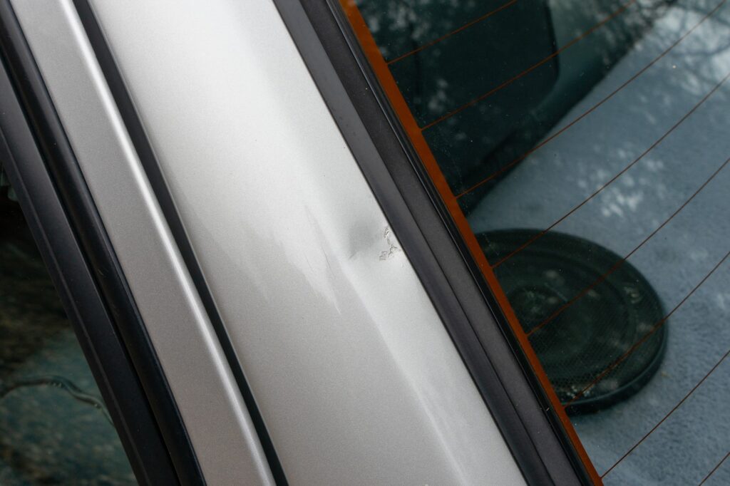 - The Passenger side C-pillar appears to have a small dent